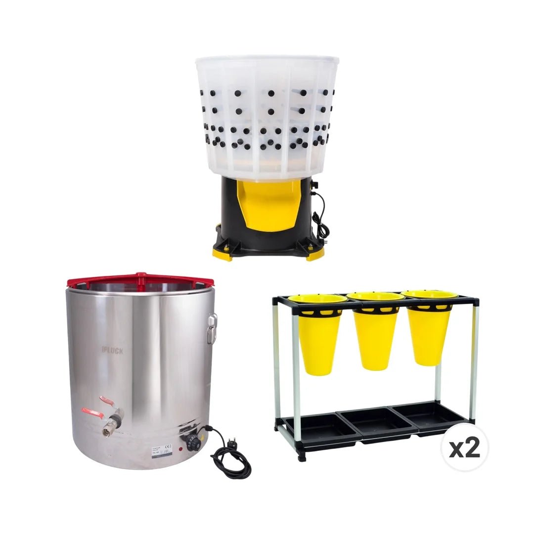 Geflügel-Komplettset: Rupfmaschine, Brühkessel & Schlachtständer