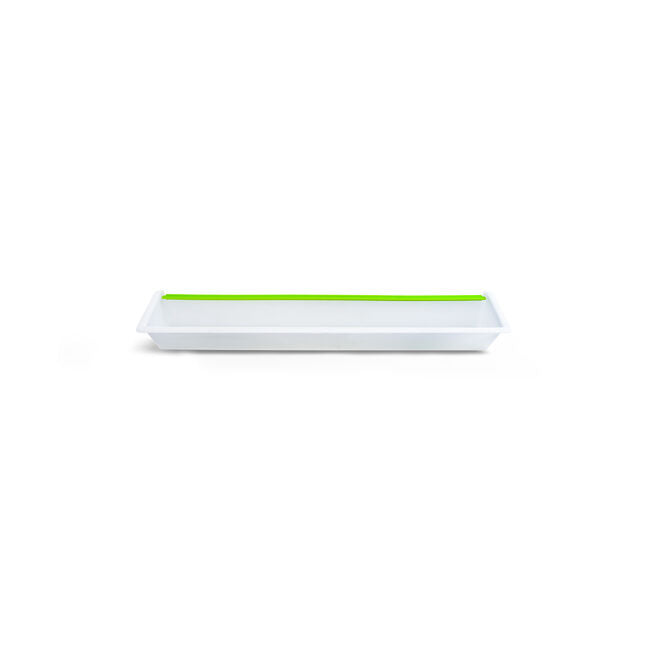 Der Futtertrog hat eine Größe von 14 × 65 × 8 cm und besteht aus hochfestem, kotbeständigem Kunststoff.