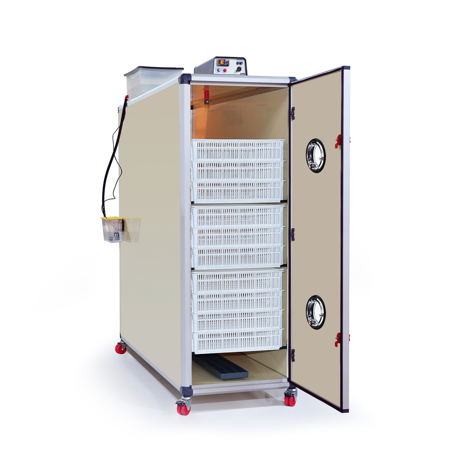 Die Cimuka T2400-H ist eine vollautomatische Schlupfmaschine, die speziell für die letzten 72 Stunden der Brutphase entwickelt wurde. Mit 2400 Schlupfplätzen bietet sie eine optimale Umgebung für das sichere Schlüpfen von Küken und ist ideal für gewerbliche Brütereien und landwirtschaftliche Betriebe mit hohen Produktionsraten.