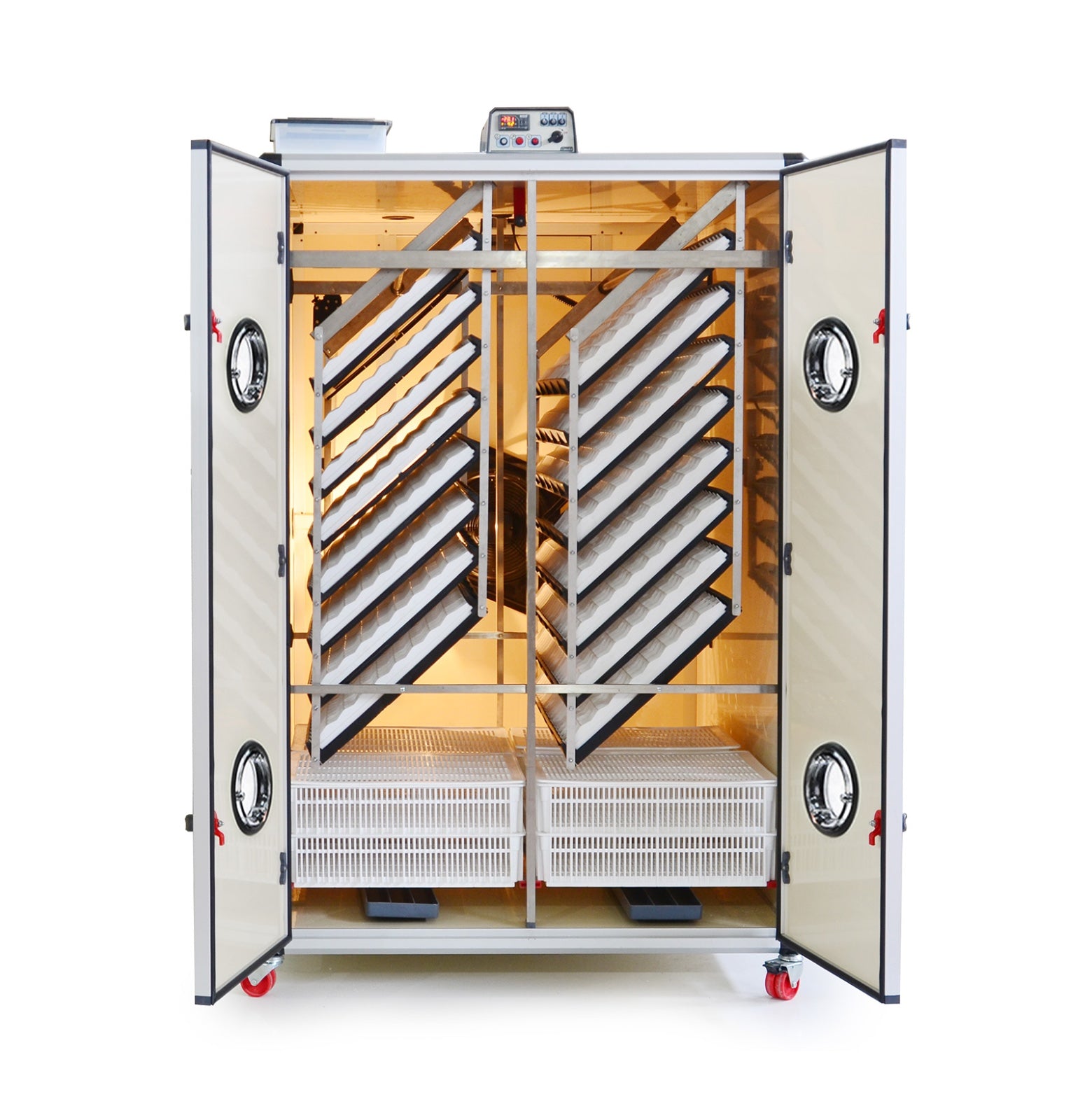 Einfache Reinigung und Wartung: Die doppelwandige, hochisolierte Kabine mit eloxierten Aluminiumecken und Türen an Vorder- und Rückseite ermöglicht eine unkomplizierte Reinigung, optimale Funktionalität und eine hygienische Umgebung für die Küken.