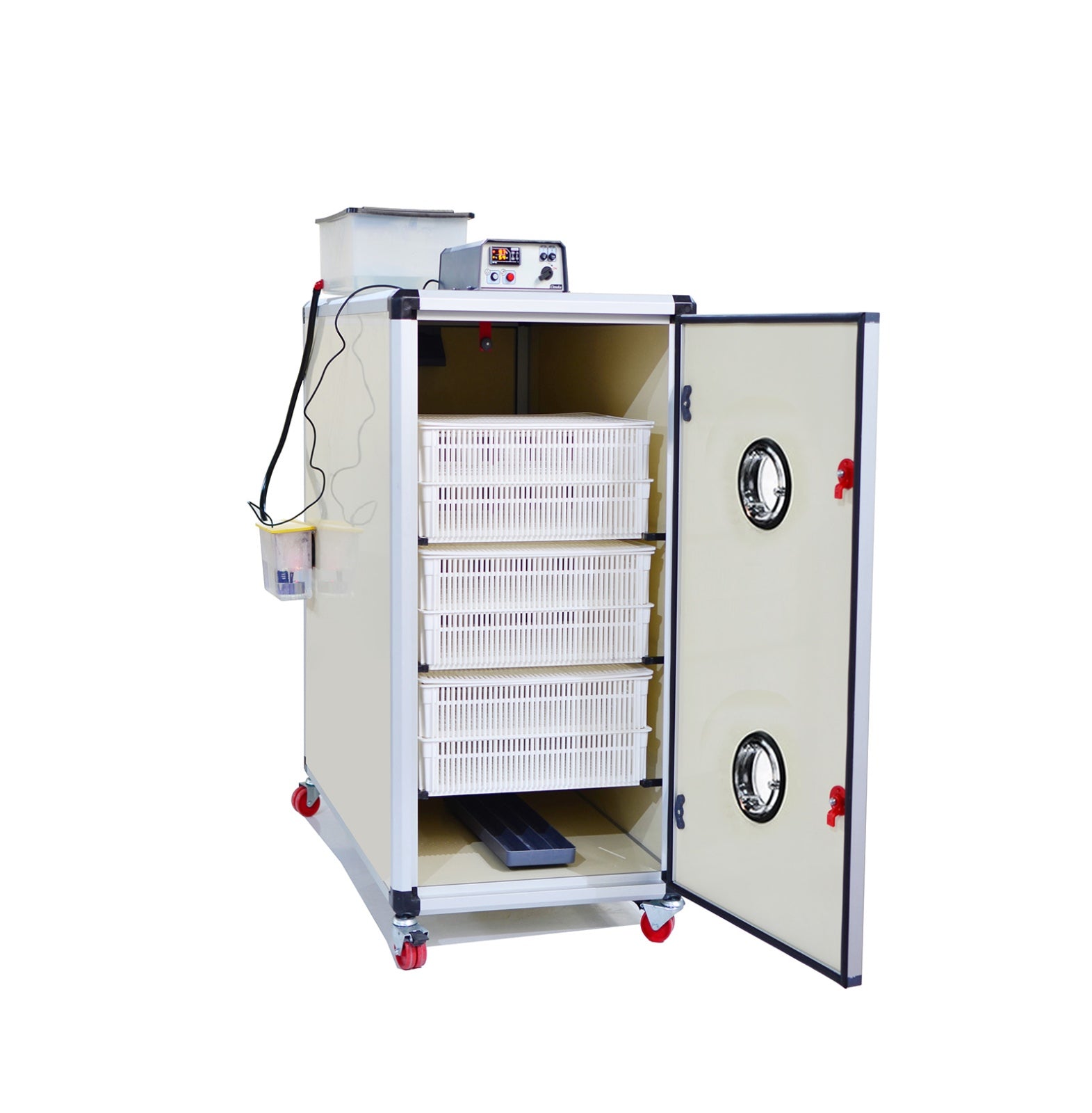 Die Cimuka T960-H ist eine vollautomatische Schlupfmaschine, die speziell für die letzten 72 Stunden der Brutphase entwickelt wurde. Mit 960 Schlupfplätzen bietet sie eine optimale Umgebung für das sichere Schlüpfen von Küken und ist ideal für gewerbliche Brütereien und landwirtschaftliche Betriebe.
