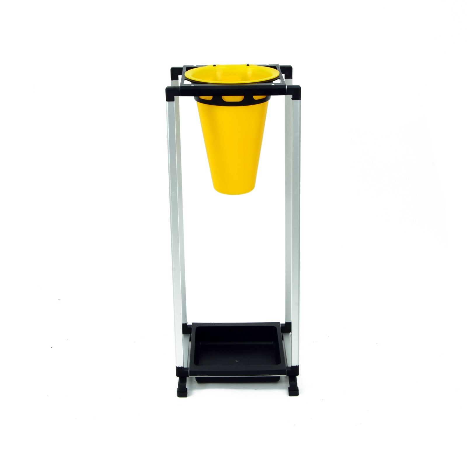 Der Stand besteht aus 1 Schlachttrichter für Hühner, einer Befestigungsöffnung für den Trichter, einem Blutauffangbehälter und einem eloxierten Aluminiumgestell.