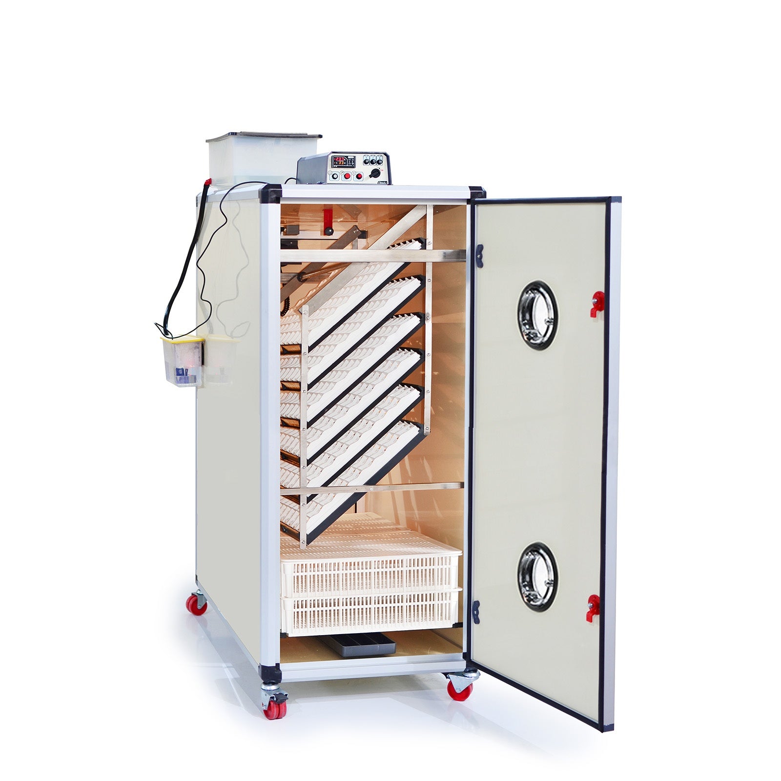 Maximale Effizienz für erfolgreiche Brut. Erlebe höchste Effizienz und Zuverlässigkeit mit der Cimuka T1280-C. Dieser vollautomatische Inkubator bietet eine ideale Kombination aus hoher Kapazität und herausragender Leistung für eine erfolgreiche Inkubation und das Schlüpfen deiner Eier. Mit 960 Entwicklungsplätzen und 320 Schlupfplätzen ermöglicht die T1280-C eine flexible Nutzung. Dank energieeffizienter Technologie und umweltfreundlicher Materialien schont sie nicht nur deine Küken, sondern auch die Umwelt.