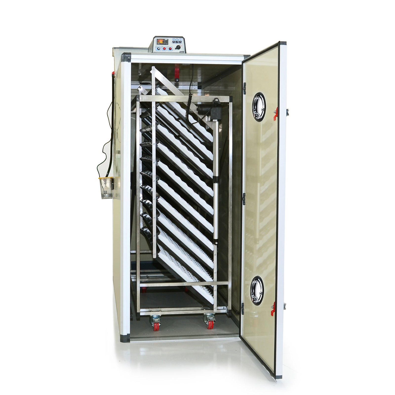 Die Cimuka T1600A/S ist eine hochleistungsfähige, vollautomatische Entwicklungsmaschine, die für die professionelle Vorbrut großer Stückzahlen konzipiert wurde. Das Modell wird mit TX2S-10 Entwicklungswagen geliefert, die eine optimale Organisation und Bestückung der Eier ermöglichen.